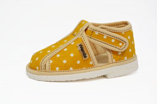 Dětské textilní bačkory Wanda jsou vyrobeny na Slovensku. Pantofle jsou lehké zdravotně nezávadné a vybaveny podporou podélné klenby. Uzavírání je na suchý zip. Zaručují pohodlnou chůzi a podporují zdravý vývoj dětské nožičky. Tvar špičky zajišťuje dostatečný prostor pro prsty.