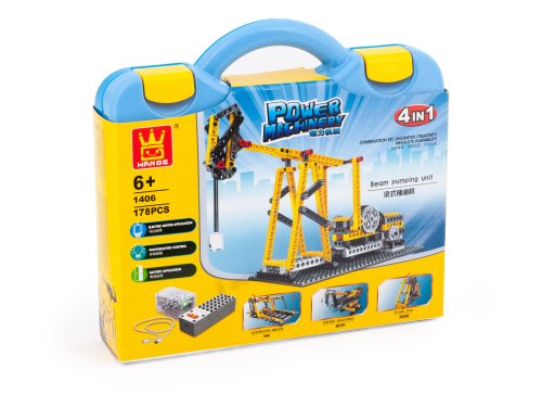 Balení obsahuje: 178 dílků stavebnice Wange, box na 2 x AA baterie (nejsou součástí balení), kabel, elektrický motůrek se světelnou diodou. K vložení baterie do nabíjecího ovladače je třeba použít šroubovák.