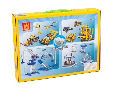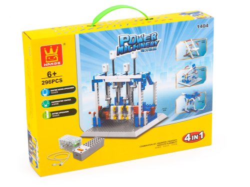 Balení obsahuje: 296 dílků stavebnice Wange, box na 2 x AA baterie (nejsou součástí balení), kabel, elektrický motůrek se světelnou diodou. K vložení baterie do nabíjecího ovladače je třeba malý šroubovák.
