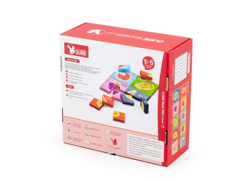 Balení obsahuje: 41 dílků stavebnice DUBIE, 11 výukových kartiček