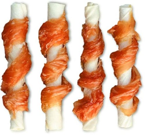 Složení: kuřecí maso, surová hovězí kůže, glycerin, sůl. Analytické složky: hrubý protein 82 %, hrubý tuk 2 %, hrubá vláknina 0,5 %, hrubý popel 3,5 %, vlhkost 18 %. Krmný návod: Podávejte jako pamlsek mezi jídly nebo jako odměnu při výcviku. Zvířeti zajistěte stálý přístup k čisté pitné vodě. Upozornění: Pohlcovač vlhkosti v přiloženém sáčku není určen ke konzumaci.