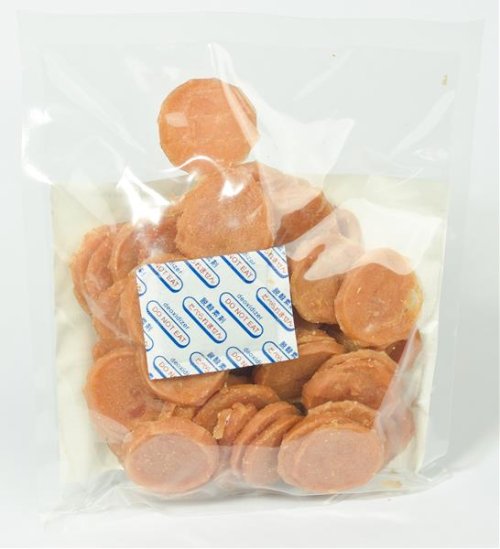 Složení: Kuřecí maso 90%, Škrob 6%, Glycerin 3%, Přírodní sladidlo(maltitol) 0,9%, Ocet 0,1%.