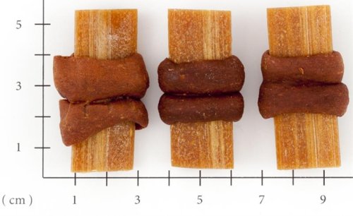Složení: Hovězí maso 50%, Pšeničná mouka 20%, rostliné bílkoviny 8%,škrob 10%, kalcium lactate 5%, glycerin 2,5%, jedlá guma 2%, sojová vláknina 2%, ocet 0,2 %, rýže monascus 0,3%