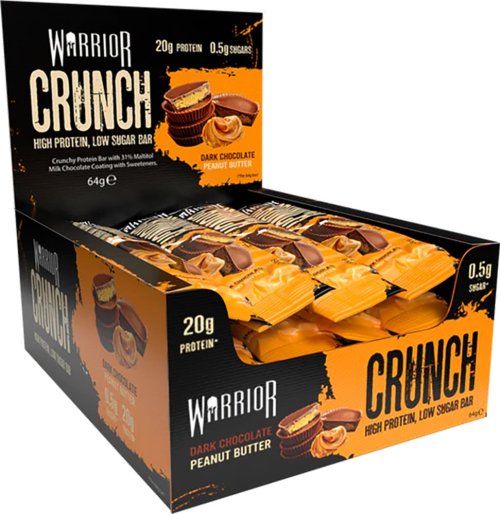 Bohatá, lahodná, vícevrstvá, křupavá nízkosacharidová, vysoce proteinová tyčinka, která se hodí jako svačinka kdykoli během dne. Proteinové tyčinky Warrior CRUNCH jsou jedny z nejprodávanějších nízkosacharidových a vysokoproteinových tyčinek ve Velké Británii dostupné v mnoha skvělých příchutích. Doporučené dávkování: