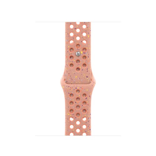 Tenhle sportovní řemínek Nike má vylisované otvory pro větší vzdušnost, je odolný, pevný a přitom překvapivě poddajný. Obsahuje barevné vločky, které tvoří náhodné vzory, takže každý řemínek je originál. Jeho hladký, hutný materiál se elegantně ovine kolem zápěstí a příjemně sedí. A zapíná se na hliníkový kolíček s matným povrchem, do kterého je pečlivě vygravírované logo Nike Run.