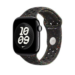 Tenhle sportovní řemínek Nike má vylisované otvory pro větší vzdušnost, je odolný, pevný a přitom překvapivě poddajný. Obsahuje barevné vločky, které tvoří náhodné vzory, takže každý řemínek je originál. Jeho hladký, hutný materiál se elegantně ovine kolem zápěstí a příjemně sedí. A zapíná se na hliníkový kolíček s matným povrchem, do kterého je pečlivě vygravírované logo Nike Run.