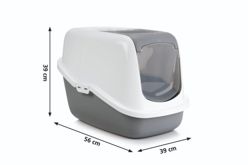 Krytá toaleta SAVIC Nestor má spodní nádobu s extra vysokým okrajem v zadní části. Je díky tomu vhodná i pro kočky, které vykonávají potřebu vestoje. Dvoubarevný kryt s výklopným úchytem pro přenášení se ke spodní nádobě připevňuje pomocí dvou klipsů. Přední část krytu s širokými dvířky lze vyklopit, abyste při běžném vybíraní nečistot nemuseli pokaždé snímat víko. Ve stropě krytu je umístěn filtr s aktivním uhlím, který zabraňuje unikání zápachu z WC. Toaleta Nestor se výborně hodí i pro navykání bojácných koček či koťat na používání krytého záchodu – kryt jim můžete nechat zpočátku vyklopený. Vysokou spodní nádobu lze používat i bez krytu. Filtr pravidelně vyměňujte. Rozměry (cca): 56 × 39 × 38,5 cm podlážka: 45 × 29 cm spodní nádoba – vnitřní rozměry: 50 × 34 × 12–25 cm dvířka: 21 × 20 cm výška vstupu: 14 cm