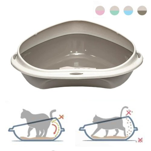 Rohové WC pro kočky z kvalitního, odolného plastu. Zvýšená zadní část pro snadnější udržení steliva uvnitř.