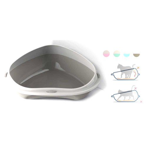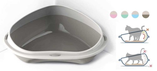 Rohové WC pro kočky z kvalitního, odolného plastu. Zvýšená zadní část pro snadnější udržení steliva uvnitř.