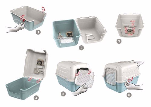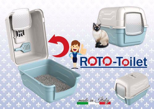 Krytá toaleta s typickým italským designem na dvířkách. Její předností je velmi snadný přístup pro čištění. Stačí odklopit a vyjmout lopatku z držáku.