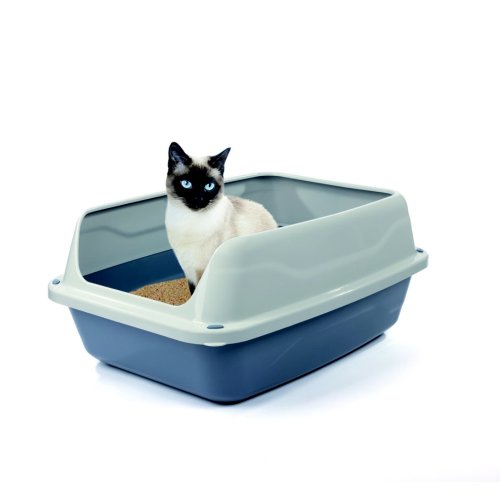 Otevřené, prostorné wc pro kočky s vysokým okrajem z kvalitního odolného plastu.