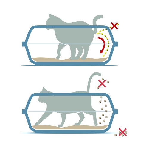 Díky vysokému okraji nevyhrabe kočka stelivo ven.