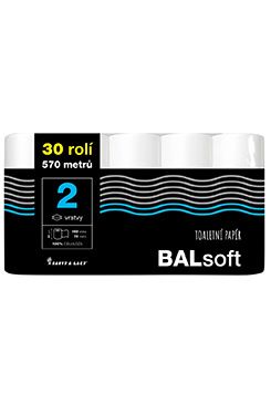 Jemný bílý dvouvrstvý toaletní papír BALsoft vyroben ze 100% celulózy vhodný pro každodenní používání. U tohoto toaletního papíru je Vám v jedné roli k dispozici 165 útržků v celkové délce 19 metrů.