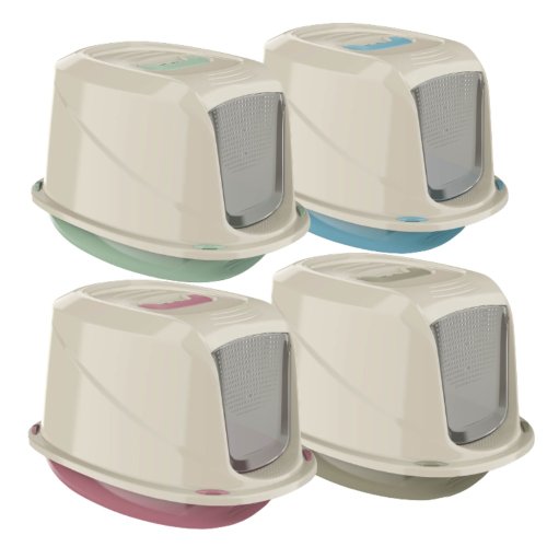 Uzavřené, prostorné wc pro kočky s dvířky z kvalitního odolného plastu.