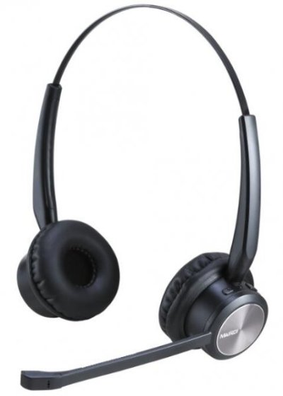 Bezdrátová dvouušní náhlavní souprava v moderním elegantním designu, s mikrofonem.