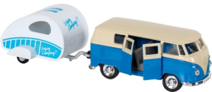 Klasický a ikonický autobus značky Volkswagen s karavanem.
