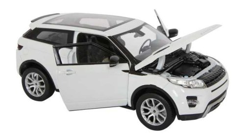 Detailní model bílého Land Rover Range Roveru Evoque z kovu a plastu má otevíratelné dveře i kapotu. Věrnost těchto modelů zvyšuje použití laků, které mají shodný barevný odstín jako skutečná auta. Měřítko 1:24 je zhotovením na hraně mezi sběratelským modelem a hračkou, autíčka vyžadují opatrnější zacházení. Dodáváno v různobarevné papírové krabičce s plastovým průhledem. Hlavní vlastnosti:kovová karoserieotevíratelné dveře a kapota