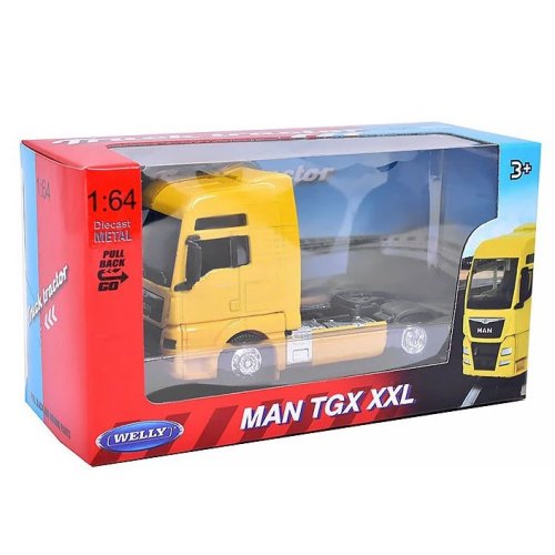 Kovový model MAN TRUCK s krabicí s průhlednou vitrínou, ze které lze model odebrat pro použití na výstavu do soukromé sbírky, je vhodným nápadem na dárek pro každého milovníka současných modelů nebo novějších či starších veteránů. Model je vyroben v měřítku 1:64. Přibližná velikost modelu je 8 cm.