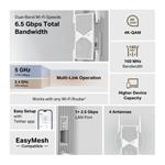 Instalace je otázkou několika sekund pomocí tlačítka WPS nebo aplikace. 2,5G Ethernet port poskytuje bleskově rychlé drátové připojení pro PC, TV nebo herní konzole. Kompatibilita se všemi generacemi WiFi i ISP je samozřejmostí.