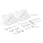 Předkonfigurovaná sada umožňuje automatické spárování ihned po instalaci bez nutnosti složité konfigurace. Aplikace Omada nabízí vizuální navádění pro přesné zarovnání antén a okamžité testování rychlosti pro ověření kvality spoje. Montáž probíhá jednoduše na stožár pomocí přiložené sady.