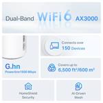 Jednotka Deco PX50 (3-pack) od značky TP-Link pokryje až 400 m². Kombinace dvoupásmové WiFi 6 a G.hn Powerline usnadňuje přenos dat mezi jednotkami Deco. Pokud bydlíte v domácnosti se silnými stěnami, vyřeší jednotky Deco váš problém s narušením signálu WiFi. Standard G.hn nové generace se postará o to, abyste měli připojení i za kovem vyztuženými stěnami.