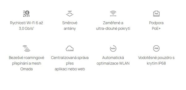 TP-Link EAP650 D 120-Outdoor je výkonný venkovní access point s Wi-Fi 6 , který zvládne více než 250 klientů současně. S pokročilými funkcemi jako je MU-MIMO, Beamforming a Omada Mesh zajišťuje stabilní připojení i na velkých plochách s náročným provozem.