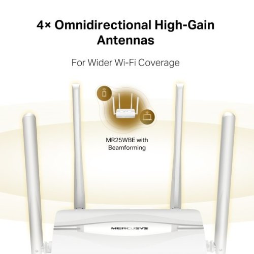 Router MR25WBE zvládne náročné streamování ve 4K/8K, hraní her ve VR/AR či videokonference. Technologie MLO umožňuje přenos dat přes více pásem najednou, čímž snižuje rušení a výpadky. Čtyři antény se zesílením signálu proniknou i přes zdi a poskytnou spolehlivé pokrytí ve více místnostech.