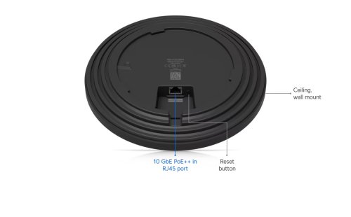 Access point je vybaven 10G Ethernet portem, který zajišťuje dostatečnou propustnost i pro nejnáročnější aplikace a zároveň slouží k napájení pomocí PoE 802.3at nebo pasivního PoE (42,5-57V DC). Díky tomu stačí jediný kabel pro data i napájení. PoE injektor není součástí balení.