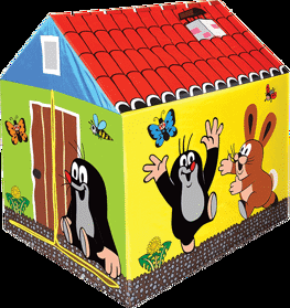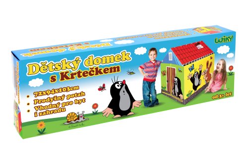 Dětský domek s motivem oblíbeného hrdiny Krtečka a jeho kamarádů. Domek mohou mít děti postavený v letních měsících nejen na zahradě, ale může zdobit i dětský pokoj. Do domečku se vejdou až dvě děti. Je vyroben z vanilového materiálu s plastovou konstrukcí. Rozměr 95x72x102 cm. Vhodné od 3 let.