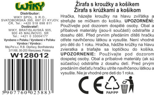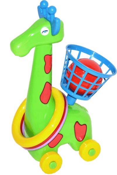 Žirafa házecí na kolečkách s kroužky a košíkem