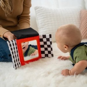 Zrcátko s kontrastními barvami vyrobené z měkké a na dotek příjemné látky, představuje ideální hračku pro nejmenší děti, které teprve začínají objevovat svět kolem sebe.