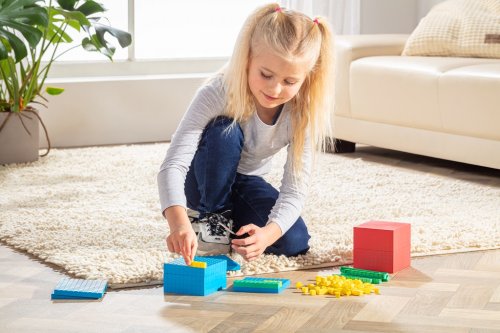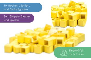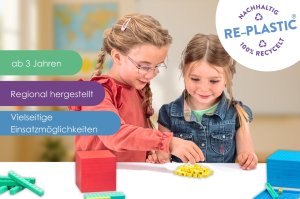 Tato sada se 121 dílky vyrobenými z udržitelného RE-plastu pomáhá dětem od 6 let hravou formou porozumět číslům. Podporuje rozpoznávání struktur a sebevědomé používání číselných hodnot, zejména při učení matematiky. Ideální pro základní školy k posílení aritmetických dovedností, jako je porovnávání objemů. Nepostradatelná aritmetická pomůcka pro každého, kdo si chce zlepšit své matematické dovednosti. Sada obsahuje 100 žlutých krychlí jednotek, 10 zelených tyčinek desítek, 10 modrých čtverců stovek a 1 červenou krychli tisícovku, která není skládací ale pevná. Hlavní vlastnosti: obsahuje 100 dílů10 barevprvní hravé zkušenosti s matematikourozpoznávání tvarů a barevtrénink paměťových dovednostívyrobeno v Německu