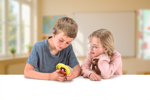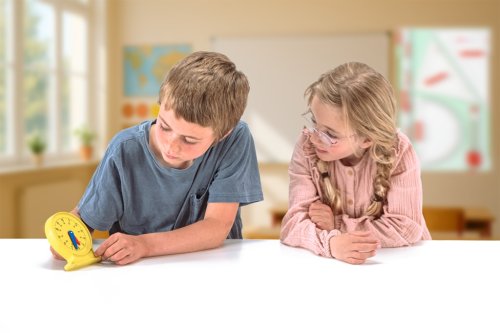 Děti mají možnost zapojit vlastní zkušenosti k tématu času a hodin. Učí se pojmenovávat čísla na ciferníku i jednotlivé ručičky (hodinovou a minutovou) a porozumět principu 24hodinového dne, kdy se každá hodina opakuje dvakrát – dopoledne a odpoledne. Osvojují si také propojení denních dob s běžnými činnostmi (např. ráno – snídaně). Důraz je kladen na rozlišení mezi konkrétním časovým bodem a časovým úsekem. Děti se učí určovat jednoduché časové úseky na základě počátečního a koncového času, nastavovat ručičky hodin a ukazovat celé, půl a čtvrt hodiny. Zároveň si procvičují různé způsoby zápisu a čtení času s využitím vystouplého ciferníku a nastavitelných, synchronizovaných ručiček. Dalšími dovednostmi je převádění časových údajů mezi různými jednotkami, zápis časových hodnot, používání měřících údajů a standardizovaných jednotek. Žáci se učí rozpoznávat a řešit slovní úlohy s časovými údaji a přistupovat k nim podle své individuální úrovně a schopností. Vyrobeno ze 100% recyklovaného plastu, který je po použití opakovaně recyklovatelný. Zabaleno v uzavíratelném papírovém sáčku s certifikací FSC. Hlavní vlastnosti: zapojení vlastních zkušeností s vnímáním časupojmenování ručiček a číslic na ciferníkupropojení denních dob s běžnými činnostmirozlišení časového bodu a časového úsekunastavování celých, půl a čtvrt hodinčtení a zápis času různými způsobypřevody mezi časovými jednotkamiřešení slovních úloh s časempřizpůsobení úrovni dítěte vyrobeno v Německu