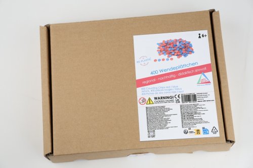 Univerzální herní žetony vhodné jako doplněk ke společenským a výukovým hrám. Podporují rozvoj porozumění množství, třídění a porovnávání. Ideální pro počítání, bodování nebo vizuální znázornění úloh. Vyrobeno ze 100% recyklovaného plastu, který je po použití opakovaně recyklovatelný. Hlavní vlastnosti: 400 žetonů v červené a modré barvěvhodné pro školní i domácí použitírozvíjí dovednost počítání a vnímání množstvívhodné pro děti od 6 letvyrobeno v Německu
