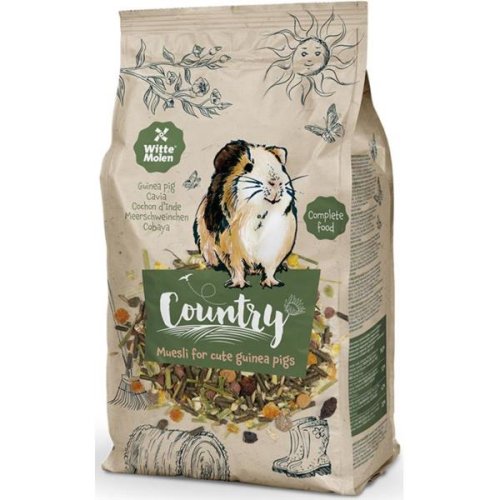 Společnost Witte Molen vyrábí krmiva již od roku 1740 a tato směs – WitteMolen Country pro morčata – představuje v jejich portfoliu návrat ke klasickým krmivům. Jde o kvalitní, vyvážené krmivo s na vlákninu bohatými vojtěškovými (alfalfa) stébly, zeleninou, ovocem a přidaným vitamínem C. Kombinace těch nejlepších přírodních surovin sestavená na základě odborných znalostí o potřebách morčat zaručí vašemu drobnému mazlíkovi kvalitní stravu, na kterou se vy i on můžete spolehnout. Hlavní přednosti: