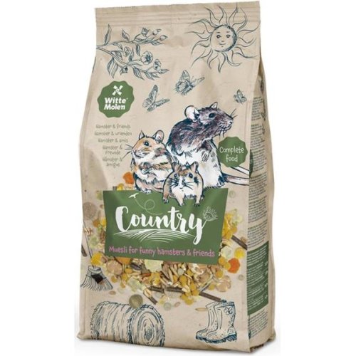 Společnost Witte Molen vyrábí krmiva již od roku 1740 a tato směs – WitteMolen Country pro křečky, křečíky, potkany, pískomily, myši a další všežravé hlodavce – představuje v jejich portfoliu návrat ke klasickým krmivům. Jde o kvalitní, vyvážené krmivo se sušenou mrkví a chutným ovocem. Kombinace těch nejlepších přírodních surovin sestavená na základě odborných znalostí o potřebách drobných všežravých hlodavců zaručí vaši mazlíkům kvalitní stravu, na kterou se vy i oni můžete spolehnout. Hlavní přednosti: