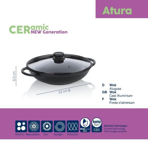 Wok Atura z litého hliníku s inovativním keramickým povrchem. Neobsahuje teflon!