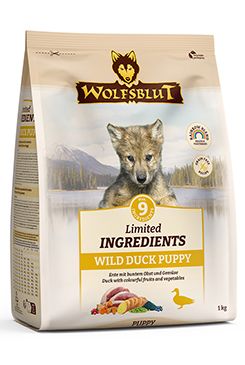 Objevte naši inovativní produktovou řadu WOLFSBLUT Limited INGREDIENTS WILD DUCK PUPPY, kde kvalita, jednoduchost a barevná rozmanitost směsi RAINBOW BLEND tvoří základ zdravého a nutričně vyváženého krmiva pro psy.