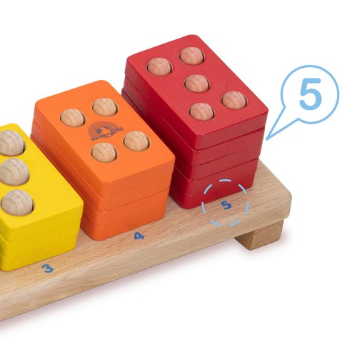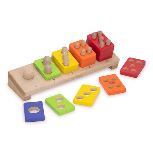S přispěním výrazných barev pomůže tato jednoduchá skládačka dětem přirozeně pochopit význam čísel a naučit se základnímu počítání. Nasazováním destiček děti mohou navíc rozvíjet i jemnou motoriku. Hračka je robustní, vyrobená z odolného masivního dřeva. Hlavní vlastnosti:základna a 15 dílků skládačkyodolné provedení z masivního dřevavytříbená barevnost a povrchová úprava