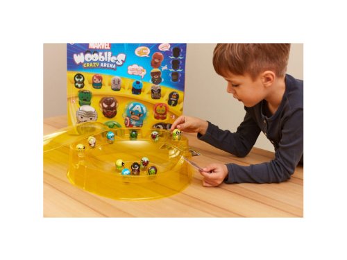 S Wooblíky je zábava! Tuto novou kolekci sběratelských wooblíků s motivy superhrdinů prostě nebudeš chtít pustit z ruky! Wooblíci se otáčí, převrací, kmitají, prostě „wooblují“!. Nekonečné možnosti hraní. Sada obsahuje: Bojovou arenu s madlem na přenášení pro vaše souboje, 4x Wooblík (překvapení jaký druh), 2x turbo vystřelovač, 1x sběratelská kartička, 1x letáček se seznamem figurek a her. Díky turbo vystřelovači můžeš woblíky roztočit a vystřelovat. Zahraj si s kamarádem, vystřel woblíky proti sobě a zjisti kdo vyhraje! Sesbírej je všechny! Rozměr balení: 42 x 35 x 9,5 cm Vhodné pro děti od 3 let