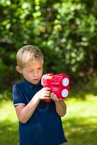 Blaster nové generace s 20 bublinkovými otvory a světelnými efekty. Po zapnutí se rozsvítí a vytváří proud jemných bublinek. Díky integrovanému zásobníku zajistí dlouhotrvající a vizuálně působivou zábavu. 20 otvorů pro intenzivní produkci bublinek. LED světelné efekty. Vestavěný zásobník na 105 ml bublinkového roztoku. Napájení: Lithiová baterie součástí, nabíjení USB kabelem. Assort je náhodný mix modelů. Výběr nelze ovlivnit. V kolekci dvě barevné varianty. Baleno v open boxu. Rozměry produktu: 17 x 20 x 7 cm. Rozměry balení: 22,5 x 22 x 7,5 cm. Věk: 3+