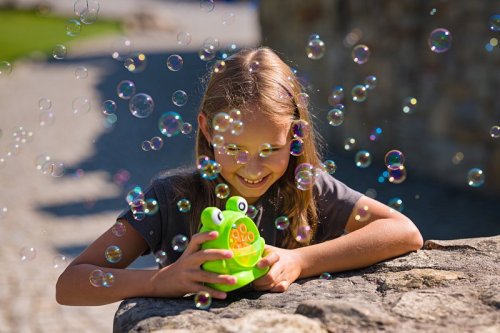 Stroj na bubliny ve tvaru žabky nebo hrošíka – stačí naplnit, zapnout a sledovat, jak fouká proud bublinek. Součástí balení je 56 ml roztoku na bubliny. Assort je náhodný mix modelů. Výběr nelze ovlivnit. Dostupné 2 varianty. Napájení: 2x AA baterie, nejsou součástí balení. Baleno v open boxu. Rozměry produktu: 11,5 x 11,2 x 8 cm. Rozměry balení: 15,5 x 11,5 x 9,2 cm. Věk: 3+