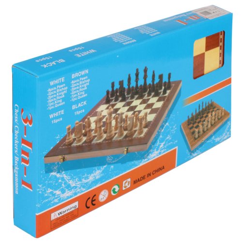 Zahrajte si šachy, dámu nebo backgammon doma i na dovolené. Tato dřevěná sada 3v1 obsahuje skládací desku o rozměrech 39 x 39 x 2 cm, šachové figurky o výšce 3 - 7 cm a hrací kameny o průměru 2 cm. Celý set má po složení rozměry 39 x 19,5 x 4 cm a hmotnost přibližně 0,7 kg. Díky tomu můžete hrát a zlepšovat se kdekoliv a kdekoliv. Ať už patříte mezi úplné začátečníky či profíky ve světě šachů, se sadou Merco Wood 39 neuděláte krok vedle! - 3v1 - materiál: borovicové dřevo, třešeň - deska: 39 x 39 x 2 cm - ve složeném stavu: 39 x 19,5 x 4 cm - pro začátečníky i pokročilé – vhodné pro děti, dospělé i seniory; skvělý nástroj pro rozvoj logiky a strategického myšlení - na doma, do školy, do práce, na dovolenou nebo jako dárek Není vhodné pro děti mladší 3 let! Nenechávejte bez dozoru dospělé, zodpovědné osoby, hrozí udušení malými částmi!