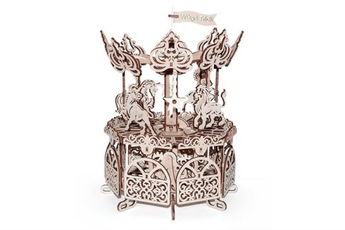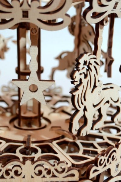 Stavebnice klasického kolotoče z překližky. Skládačka je dodávána v nesloženém stavu, balena v krabici. Vybaveno detailním návodem k sestavení. Hlavní vlastnosti:197 precizně vyřezaných dílkůstřední obtížnost sestavení
