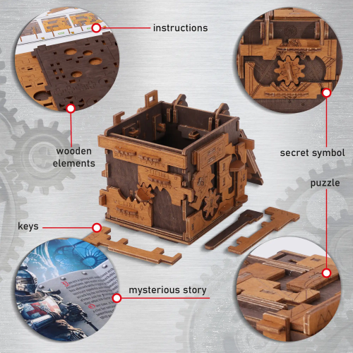 Odemknutí Puzzle boxu s hádankami ze série Escape Room je víc než jen hmatový zážitek - je to cesta do historie. Když se ponoříte hlouběji, pečlivé rytiny vás lákají blíž a připomínají ikonické symboly templářů a zednářů. Mohla by mezi těmito dvěma řády existovat skrytá spojitost? Složitě vyryté nápisy nejsou jen na okrasu; slouží jako klíč k rozluštění složitého mechanismu schránky, který má chránit její cenný obsah před zvědavýma očima. Hledáte dárek, který vynikne? Tohle je dobrodružství v krabici ideální pro nadšence a milovníky historie, hlavolamů nebo kohokoli se zálibou v jedinečných věcech - darovat tento výtvor znamená darovat zážitek, výzvu a příběh, který čeká na vyprávění.