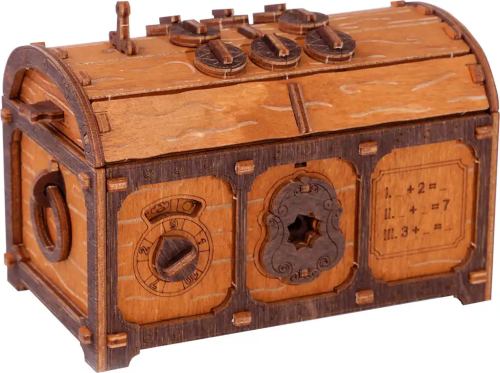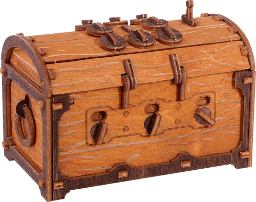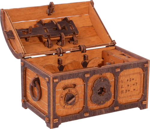 3D Puzzle ze série Escape Room - Truhla s pokladem láká už na první pohled. Je kombinací složitého designu a mechanického zázraku. Představte si truhlu, která je tak pečlivě vyrobená, že každá západka a každý pant se stávají součástí rozvíjejícího se příběhu. Po sestavení vás čeká napínavá cesta luštění, abyste odhalili její tajemství. Pokud hledáte dárek, který překračuje hranice všednosti, je to právě tento. Ať už je to pro milovníka historie, nadšence do hlavolamů nebo někoho, kdo oceňuje jemné umělecké zpracování, truhla s pokladem vás jistě uchvátí. Není to jen dárek, je to zážitek, který čeká na své rozvinutí.