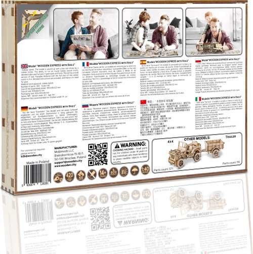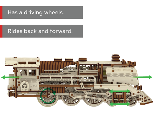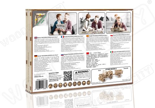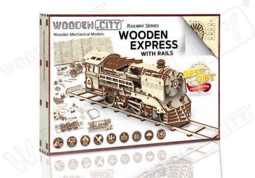 3D puzzle WOODEN CITY Wooden Express je neobvyklým dárkem pro vaše blízké a milovníky světa na kolejích. Obtížnost: 4 z 5 (dle rozdělení Wooden City) Orientační doba na složení: 7 hodin Měřítko: 1:40 Dřevěné 3D puzzle WOODEN CITY jsou detailně propracované funkční mechanické modely, které se skládají bez lepidla nebo nářadí. Jsou vyrobeny z ekologických dřevěných materiálů - kvalitní březové překližky. S mechanickými dřevěnými puzzle WOODEN CITY zažijete hodiny zábavy při skládání a poznáte převody, gumičkové motory, ozubená kolečka a další součástky z bezprostřední blízkosti.