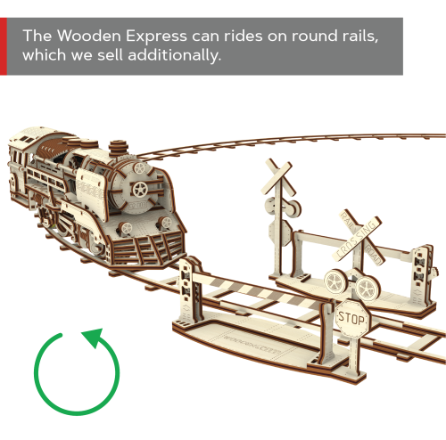 Od dětství každý snil o tom, že bude mít vláček s kolejemi, bude ho sestavovat a sledovat, jak jezdí. Dokonale navržený dřevěný Express s realistickými detaily vám pomůže vrátit se do minulosti a připomenout si své vzpomínky a pocity. Sestavte model s kamarády nebo dětmi, postavte ho na koleje a užijte si chvíle zábavy a štěstí v přítomnosti. - startuje se speciálním klíčem - dvířka od spalovny - hnací kola - spřáhlo spojující express a tendr - jezdí dopředu, dozadu a dokola - sestavený model: 35 x 11 x 12,2 cm - rozměry kolejí: 60 x 6,1 x 1,5 cm