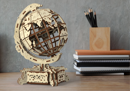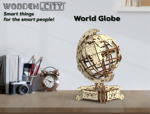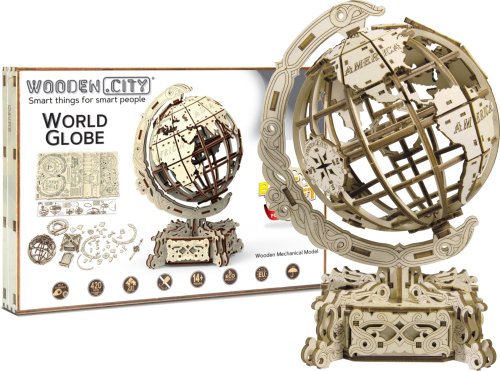 Dřevěné 3D puzzle Globus je neobyčejná mapa světa, fascinující výzva a také skládačka pro relaxaci, odbourání stresu a zajímavá dekorace. - otáčí se kolem vlastní osy - názvy kontinentů v anglickém jazyce - elegantní podstavec s tajnou schránkou (třeba na vizitky) 3D puzzle WOODEN CITY World Globe je neobvyklým dárkem pro vaše blízké a milovníky cestování.