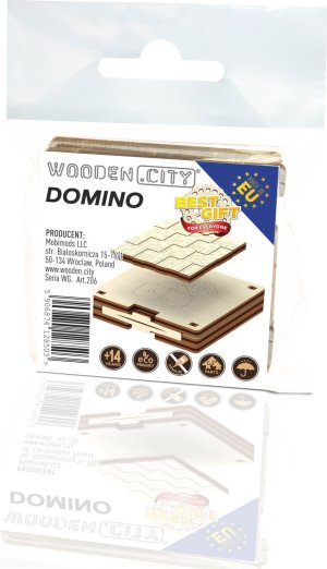 Orientační doba na složení: pár minut. Pravidla hry Domino: Každé domino je obdélníková destička s čárou rozdělující její plochu na dva čtvercové konce. Každý konec je označen určitým počtem bodů (nazývaných také pips, nips nebo dobs) nebo je prázdný. Zadní strany kostek domina v sadě jsou nerozlišitelné, buď prázdné, nebo mají nějaký společný vzor. Hrací prvky domina tvoří sadu domina, někdy nazývanou balíček nebo balíček. Tradiční čínsko-evropská sada domina se skládá z 28 kostek domina, které obsahují všechny kombinace počtu bodů od nuly do šesti. Nejzákladnější varianta domina je určena pro dva hráče a vyžaduje sadu s dvojitou šestkou. 28 kamenů je zamícháno lícem dolů a tvoří zásobu neboli boneyard. Každý hráč si vylosuje sedm kamenů; zbývající se nepoužívají. Jakmile hráči začnou tahat kameny, jsou obvykle položeny na kraj před hráče, takže každý hráč vidí své vlastní kameny, ale nikdo nevidí hodnotu kamenů ostatních hráčů. Každý hráč tak po celou dobu hry vidí, kolik kamenů zbývá v rukou soupeře. Jeden hráč začíná tím, že položí (zahraje první kámen) jeden ze svých kamenů. Tímto kamenem začíná hrací linie, ve které se musí shodovat hodnoty sousedních dvojic konců kamenů. Hráči střídavě prodlužují herní linii s jedním kamenem na jednom z jejích dvou konců; pokud hráč nemůže umístit platný kámen, musí pokračovat v tahání kamenů ze zásoby, dokud se mu to nepodaří. Hra končí, když jeden z hráčů vyhraje tím, že zahraje svůj poslední kámen, nebo když je hra zablokována, protože žádný z hráčů nemůže hrát. Pokud k tomu dojde, získá ten, kdo zablokování způsobil, všechny zbývající hráčské body bez započtení svých vlastních.